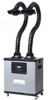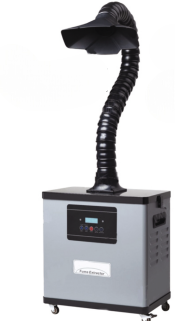 Efficient fume extractor with single duct for removing harmful soldering fumes. Compact, quiet, and reliable, providing a safe working environment for technicians.
