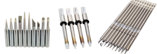 High-performance soldering tips available in multiple shapes and sizes. Designed for fast heat transfer and long life, they ensure consistent soldering quality across various applications in electronics repair and manufacturing.